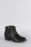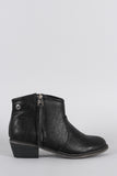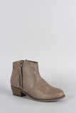 These cowgirl ankle boots feature a round toe silhouette, zipper trim on the side, stitching accents, and low stacked heel. Finished with a cushioned insole, smooth lining, and side zipper closure for easy on/off.