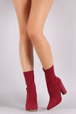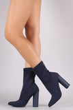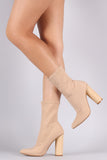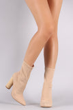 These stylish ankle boots features a slightly stretchy shaft with center seam detail, pointy toe silhouette, and thick round heel. Finished with a cushioned insole and pull on construction.