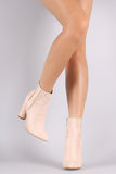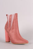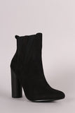 These stunning ankle boots features a soft vegan suede with elastic gore inset, pointy toe silhouette, and thick round heel. Finished with a cushioned insole, soft faux fur lining, and side zipper closure for easy on/off.