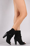These gorgeous booties feature a perforated vegan suede shaft with braided ankle tie detail, peep toe silhouette, and chunky stacked heel. Finished with a back slit detail, cushioned insole, and easy pull on style.