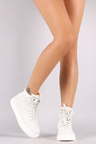These creeper sneakers feature a round toe silhouette, chunky flatform sole, and lace up fastening. Finished with a cushioned insole and padded collar/tongue for all day comfort.
