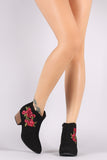 These western-inspired booties feature an almond toe silhouette, vegan suede upper with beautiful floral embroidery design, and chunky stacked heel. Finished with a high-low collar design, cushioned insole, and convenient side zip closure.