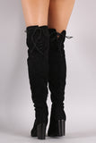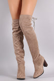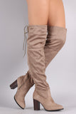 These fashionable boots feature an almond toe silhouette, back lace-up design, and chunky stacked heel. Finished with cushioned insole, smooth lining, and partial side zipper closure for easy on/off.
