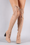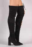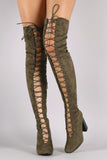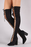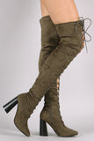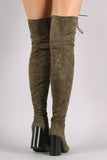 Suede Lace Up Chunky Heeled Over-The-Knee Boots