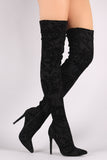 • Liliana Fleur De Lis Burnout Velvet Stiletto Over-The-Knee Boots