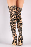 Liliana Fleur De Lis Burnout Velvet Stiletto Over-The-Knee Boots