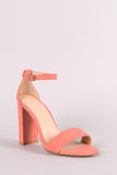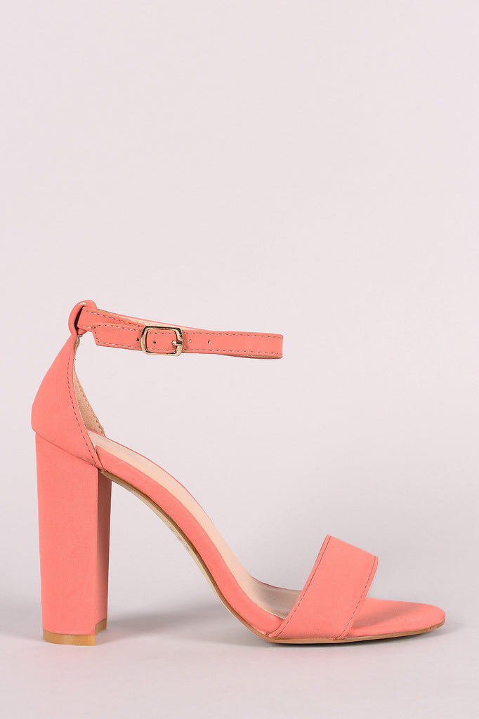 This lovely heel features an open toe silhouette, single band across vamp, chunky wrapped heel, and adjustable ankle strap with buckle fastening. Lightly padded insole for comfort.