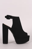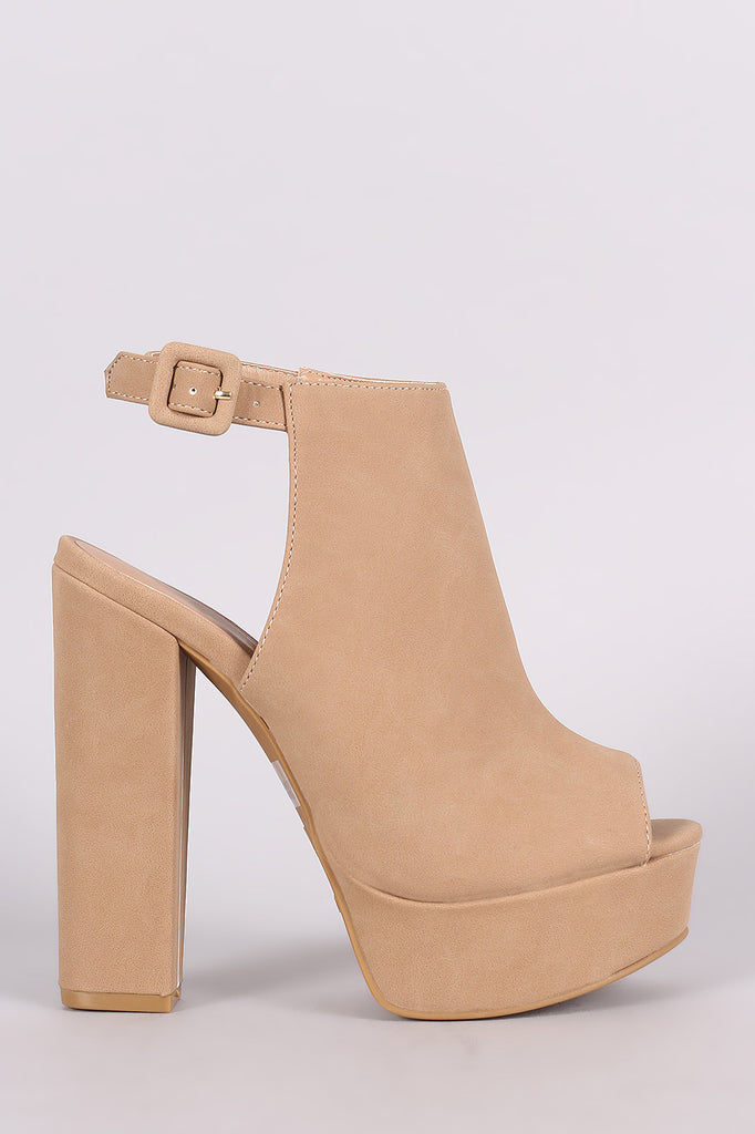 This classic mule heel features a peep toe silhouette and adjustable slingback strap with buckle fastening. Finished with a lightly padded insole, covered tribute platform, and chunky heel.