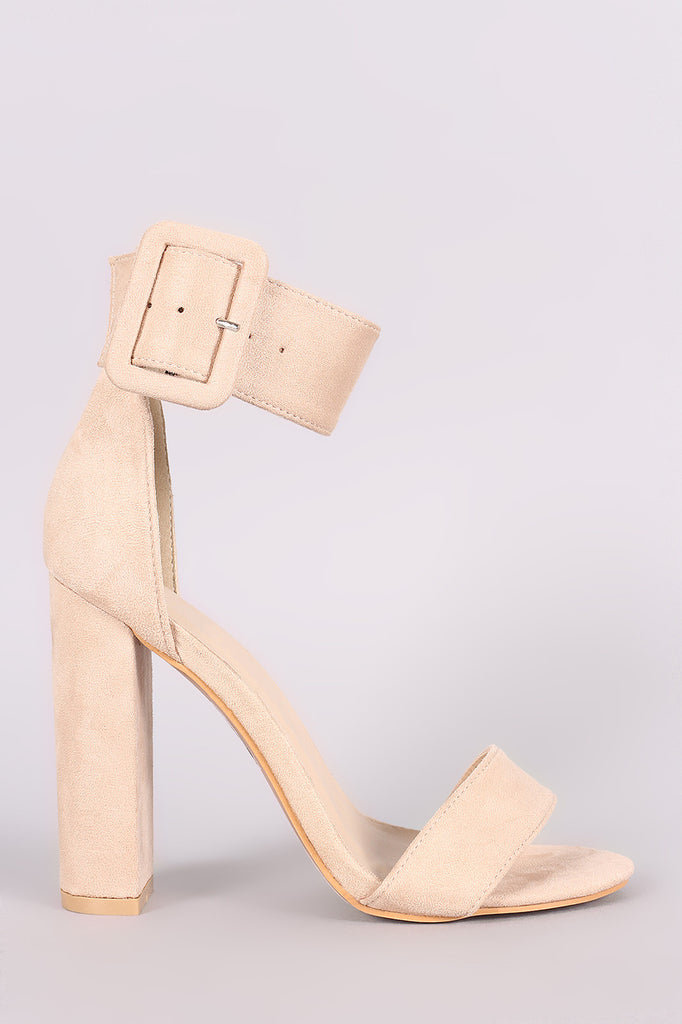 This trendy heel features an open toe silhouette with a single band across vamp, chunky wrapped heel, ankle strap with buckle fastening and lightly padded insole for comfort.