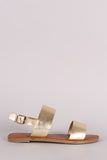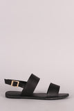 This lightweight flat sandal features an open toe silhouette, double band across vamp, and adjustable slingback strap with buckle closure. Finished with lightly padded insole for comfort.