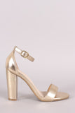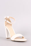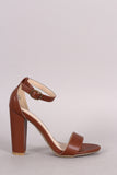 This alluring heel features a single band across vamp, open toe silhouette, and wrapped thick heel. Finished with a lightly padded insole and adjustable ankle strap with buckle fastening.