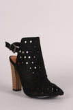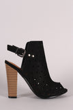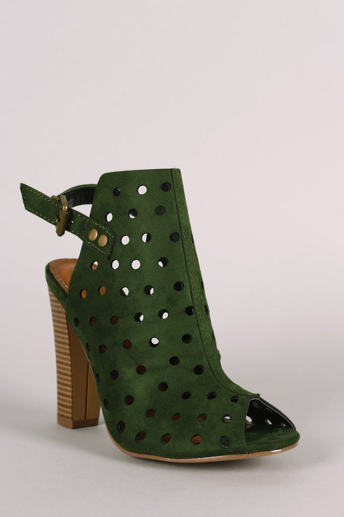 This stylish heel features a soft vegan suede with delicate punch hole detailing, peep toe silhouette, and cutout back with an adjustable slingback strap closure. Finished with cushioned insole and chunky stacked heel.