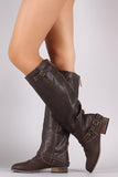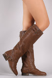 Breckelle Double Buckle Ruched Riding Knee High Boot