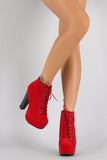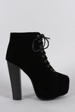 Vegan Suede Platform Chunky Heel Lace Up Booties