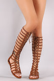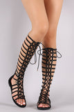 Bamboo Suede Strappy Studded Lace-Up Gladiator Sandal