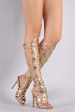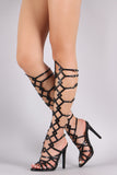This eye-catching heel features a caged silhouette, single sole, and wrapped stiletto heel. Finished with a lightly padded insole and adjustable multiple back-straps with buckle fastening.