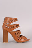 This cutesy heel features a vegan leather upper, 4-strap vamp with cutout details, peep toe silhouette, and faux wooden chunky heel. Finished with a rear zip-up closure and lightly cushioned insole for comfort.