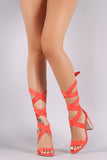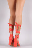 Liliana Suede Open Toe Lace Up Sash Chunky Heel