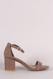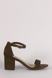 Bamboo Suede Ankle Strap Open Toe Block Heel