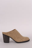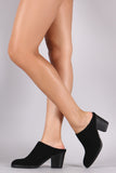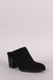 This classic mule features a vegan nubuck leather upper, slip-on entry, lightly padded insole, and chunky heel.