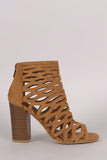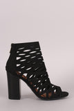 Bamboo Suede Caged Cutout Chunky Heeled Booties