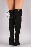 These boots feature a slouchy fitted shaft with an adjustable drawstring at top. Adjustable mid way inner side zipper. Almond toe. Finished on a chunky heel.