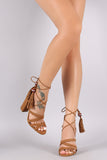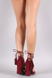 Bamboo Suede Beaded Tassel Lace Up Chunky Heel