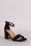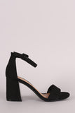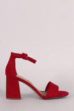 This chic heel features an open toe silhouette, one band across vamp, adjustable ankle strap with side buckle closure, and chunky flared heel with inner metallic accent. Lightly padded insole for comfort.