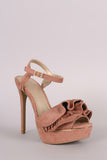 Qupid Suede Tiered Ruffle Platform Dress Heel