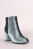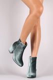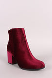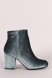 Qupid Crushed Velvet Blocky Heeled Ankle Boots