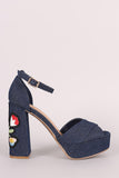 Bamboo Denim Embroidered Floral Chunky Platform Heel
