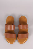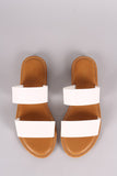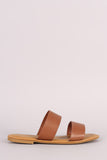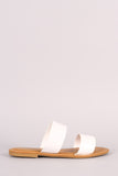 This slide sandal features an open toe silhouette, double wide bands across vamp, and lightly padded insole.