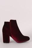 These ankle boots feature a soft crushed velvet, chunky wrapped heel, round toe silhouette, high-low collar design, and side zip closure. Completed with a cushioned insole and soft lining.