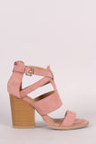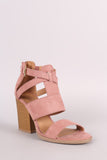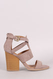 Qupid Gladiator Caged Open Toe Chunky Heel