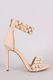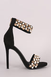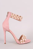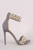 Suede Pearl And Stud Ankle Cuff Stiletto Heel
