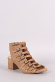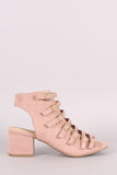 This open toe heel , features an open front with corset adjustable buckle straps. Rear cutout with slingback strap and an adjustable inner side zipper. Finished on a block heel.