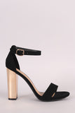Bamboo Nubuck Open Toe Metallic Chunky Heel