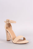 This heel features an open toe silhouette, adjustable ankle strap with buckle closure, and covered chunky heel with mirror-shine design. Finished with a lightly padded insole.