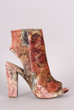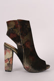 Bamboo Floral Velvet Peep Toe Chunky Heeled Booties