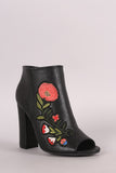These lovely ankle boots feature a peep toe design, embroidery floral patch decor, chunky wrapped heel, and side zip closure. Finished with a cushioned insole and soft lining.