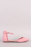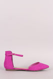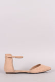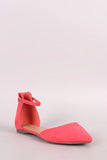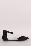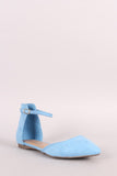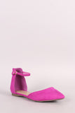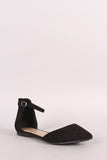 Breckelle Suede Pointy Toe Ankle Strap Flat