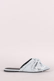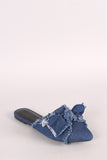 Wild Diva Lounge Frayed Denim Bow Pointy Toe Flat