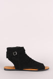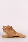 Bamboo Slouchy Cutout Suede Open Toe Flat Sandal