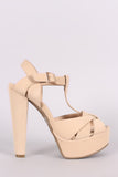 Bamboo Nubuck T-Strap Chunky Platform Heel