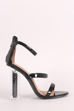Patent Triple Straps Chunky Perspex Glitter Heel
