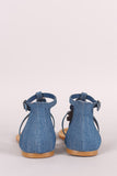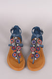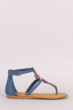 Bamboo Denim Beadwork T-Strap Thong Flat Sandal